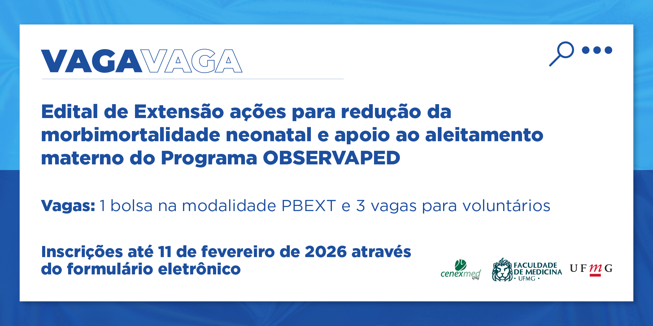 Até o dia 11 de fevereiro estão abertas as inscrições para o projeto de extensão: Ações para redução da morbimortalidade neonatal e apoio ao aleitamento materno do Programa OBSERVAPED da Faculdade de Medicina da UFMG.