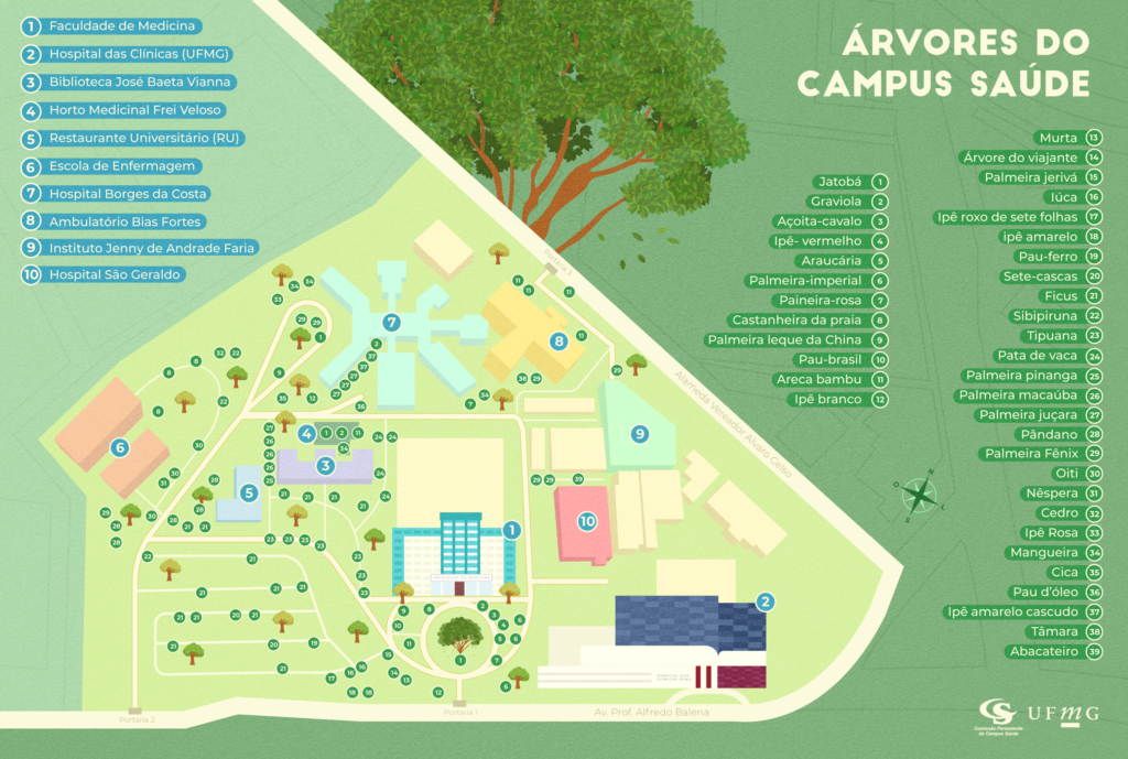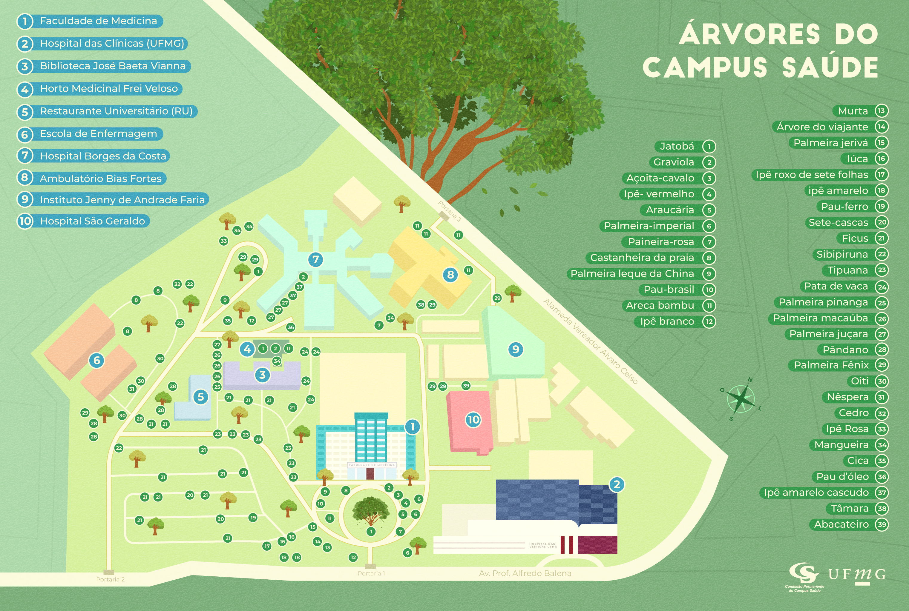 O Campus Saúde da UFMG é uma área bem arborizada. Essa vegetação proporciona sombra e qualidade ambiental para a comunidade, contribuindo também para a conservação da biodiversidade.
