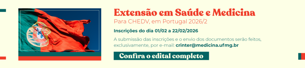 Entre os dias 1º e 22 de fevereiro de 2026, o Centro de Relações Internacionais (Crinter), estará recebendo inscrições, com o objetivo de selecionar 4 (quatro) estudantes para cursar a disciplina MED158 – EXTENSÃO EM SAÚDE E MEDICINA no Centro Hospitalar de Entre o D’Ouro e Vouga, em Santa Maria da Feira, Portugal