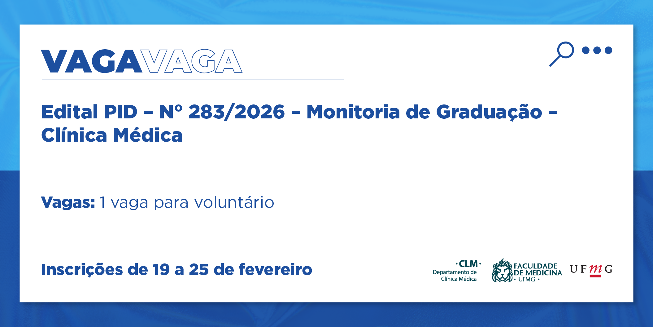 Edital PID – N° 283/2026 – MONITORIA DE GRADUAÇÃO – CLÍNICA MÉDICA