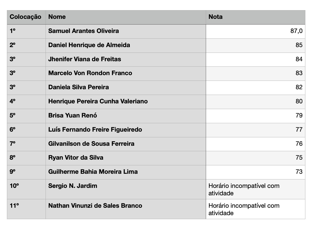 Inscrições de 06/10/2022 a 14/10/2022 até as 20 horas