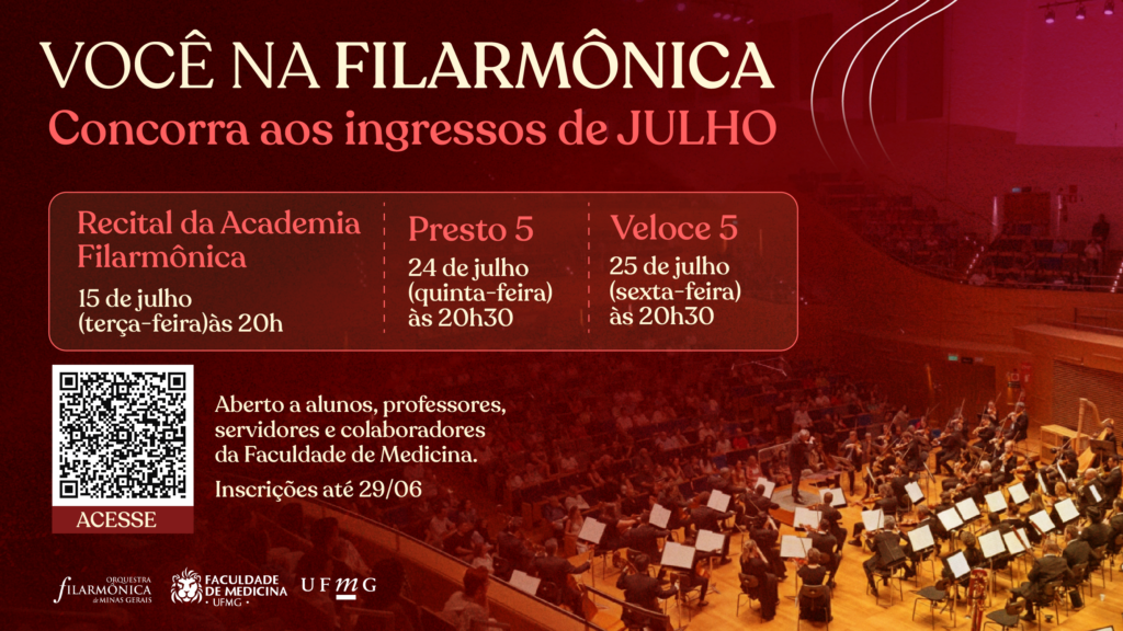 Após a parceria entre a Faculdade de Medicina da UFMG e a Orquestra Filarmônica de Minas Gerais, segunda campanha do sorteio de ingressos para os concertos da Orquestra Filarmônica de Minas Gerais já está no ar. Para o mês de julho serão ofertadas três apresentações: