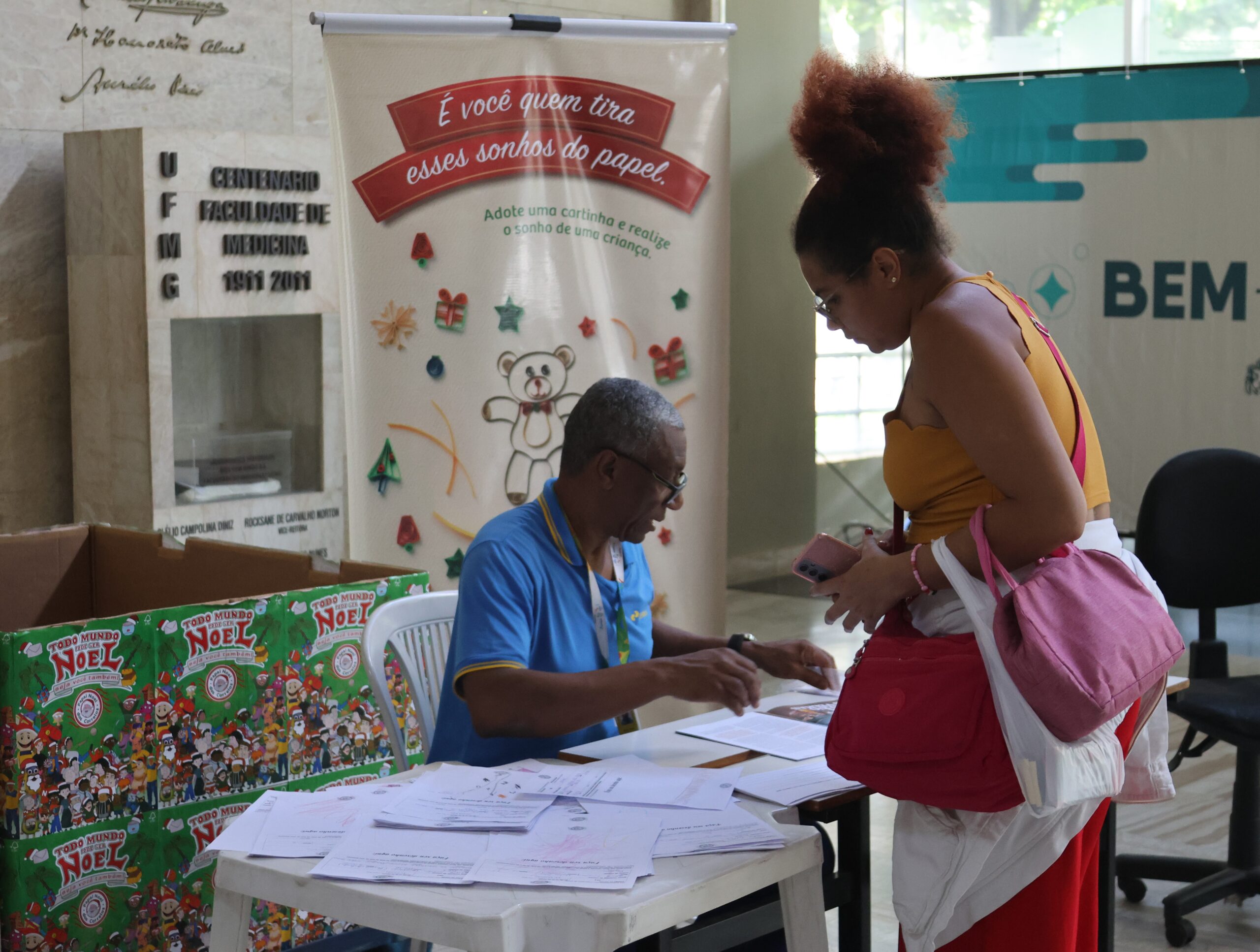 Até o dia 12 de dezembro, o Hall de entrada da Faculdade de Medicina da UFMG, recebe a Campanha Papai Noel dos Correios, iniciativa que promove a adoção de cartinhas escritas por crianças e a realização de seus pedidos de Natal.
