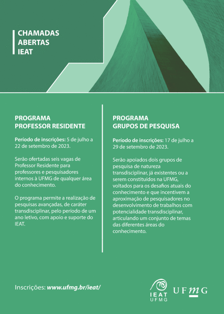 Os grupos de pesquisa aprovados vão receber apoio do IEAT pelo período de dois anos, com início no 1º semestre letivo de 2024. As inscrições devem ser feitas através do endereço eletrônico editais@ieat.ufmg.br até dia 5 de outubro de 2023.
