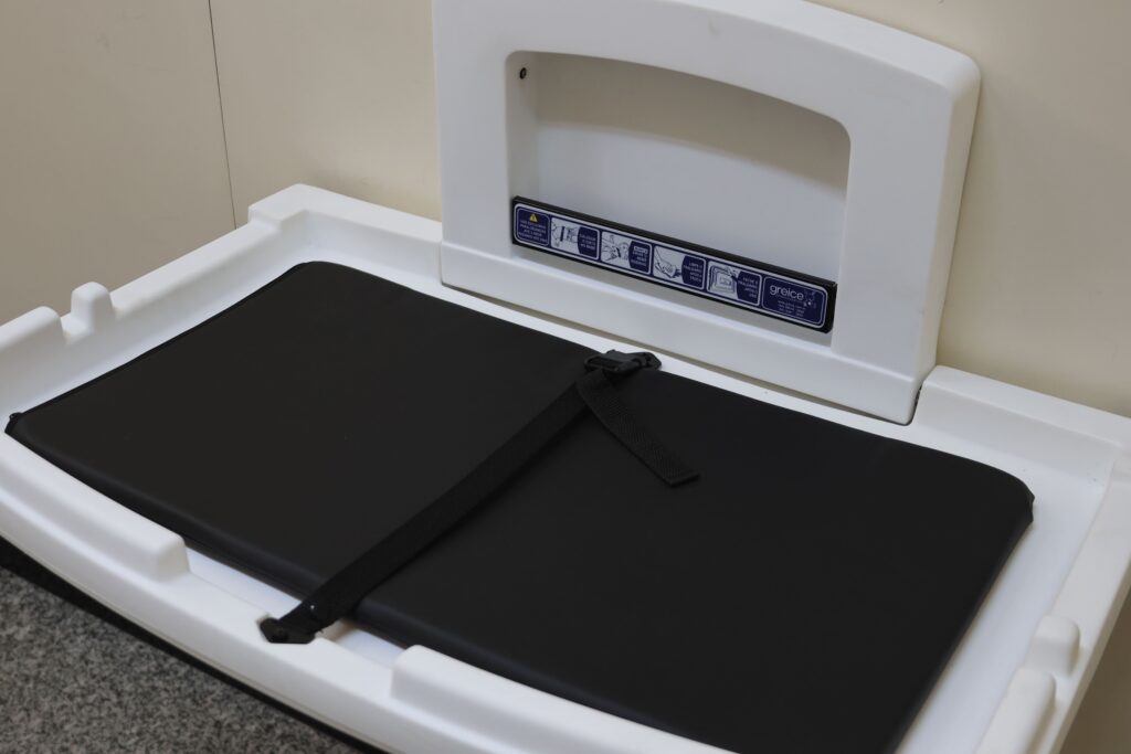 Com este, agora são dois trocadores disponíveis para uso no prédio, sendo o segundo instalado na sala de amamentação e descompressão sensorial, Espaço Elza Melo (sala 030).
