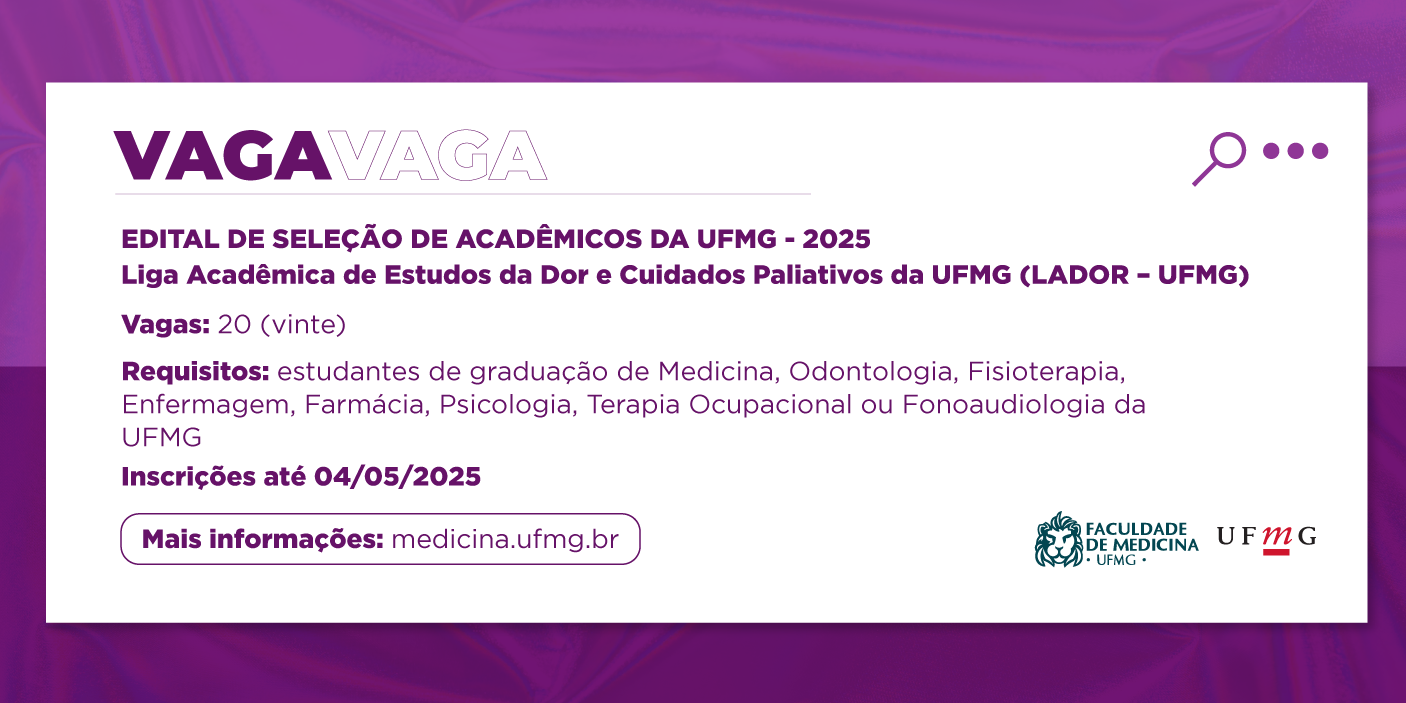 Mais informações no edital (acesse aqui), Instagram da Liga @lador.ufmg e e-mail dor.hcufmg@gmail.com.