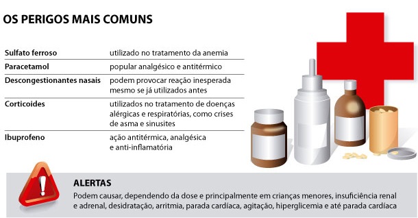 “Um ‘simples’ sulfato ferroso, para anemia; ou o paracetamol, amplamente utilizado como analgésico e antitérmico, parecem inofensivos, mas podem causar intoxicações graves, principalmente em crianças pequenas, podendo levar até à insuficiência hepática e à necessidade de transplante”, explica o endocrinologista pediátrico Rafael Mantovani, membro da Divisão de Endocrinologia da Criança e do Adolescente do Hospital das Clínicas da UFMG.