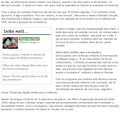 É uma prática estabelecida em várias maternidades brasileiras há alguns anos, especialmente em Belo Horizonte. Há unidades-canguru nas principais maternidades públicas, que são modelo de qualidade de atendimento humanizado.