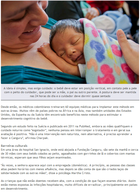 Atualmente o método canguru é reconhecido como uma excelente proposta de tratamento humanizado para mãe-pai-filho, pré-termo nas unidades neonatais, tanto em países desenvolvidos como em desenvolvimento.