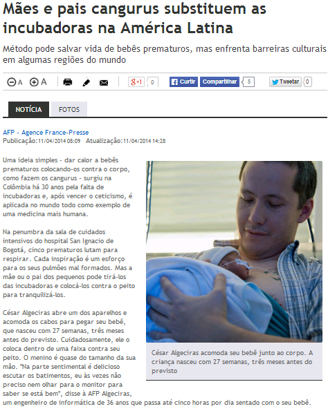 Mães e pais cangurus substituem as incubadoras na América Latina