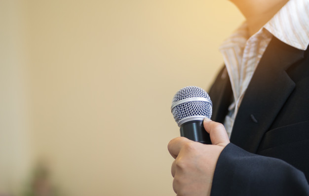 O microfone é um instrumento que amplifica o som da voz. Os profissionais da voz, que têm uma elevada demanda vocal, e falam em ambientes ruidosos constantemente devem fazer uso do aparelho.