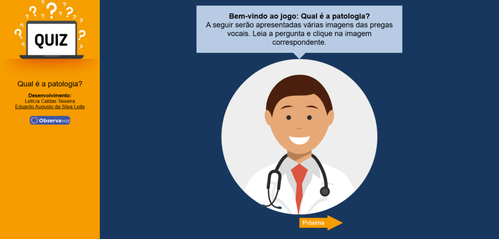 “Qual é a patologia” é um quiz que vai auxiliar o estudante de Fonoaudiologia a se familiarizar com as imagens das principais patologias laríngeas! Boa navegação.